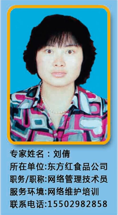 劉 倩---東方紅食品公司網(wǎng)絡(luò)管理技術(shù)員